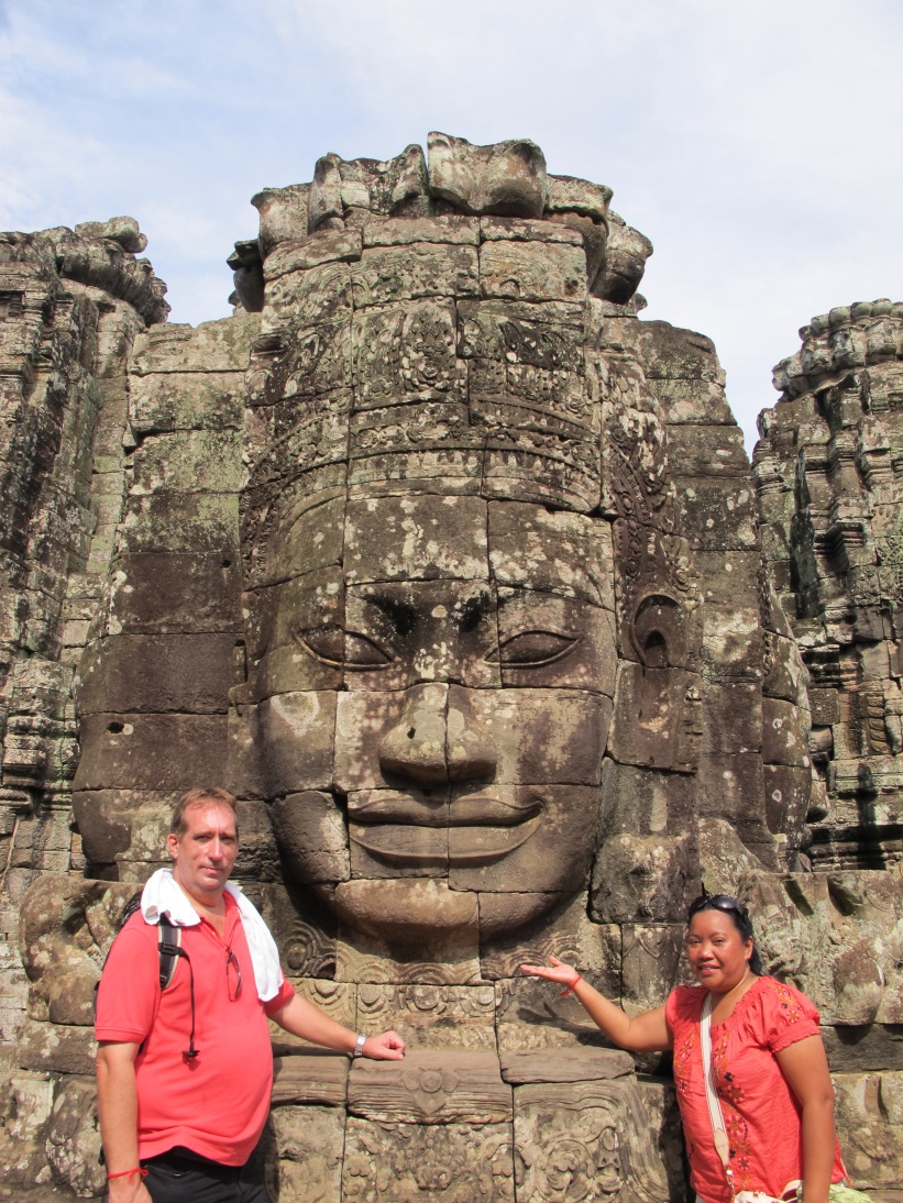 Bayon is famous for its giant stone faces that adorn the top of the temple. To think that they built everything by hand is simply amazing. This is just one temple. And there are 1000 in the area. Think , how many people gave their lives to the king, for these temples to be erected. It must have been millions. I am sure many of them died. 😦 But their legacy lives on.