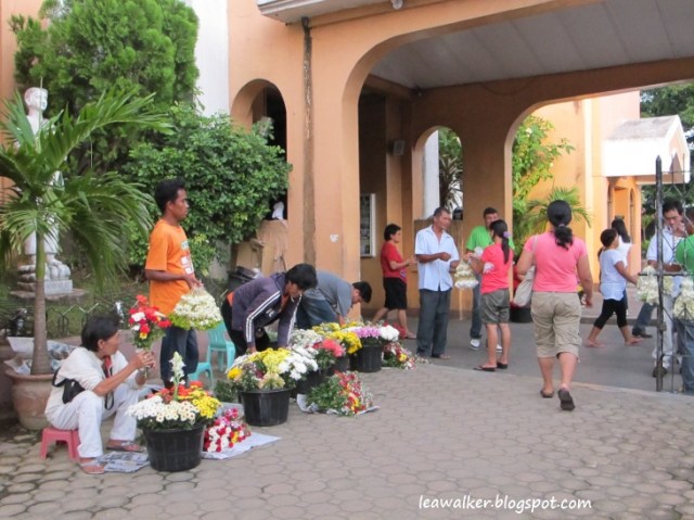 | The flower vendors outside the church. |
