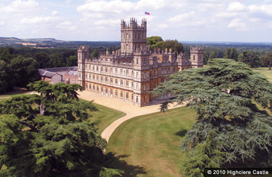 To borrow the words of Wikipedia, the series is set in the fictional Downton Abbey, the Yorkshire country house of the Earl and Countess of Grantham, and follows the lives of the aristocratic Crawley family and their servants during the reign of King George V. The first series spans the two years before the Great War beginning with news of the sinking of the Titanic in 1912, which sets the story in motion. The second series covers the years 1916 to 1919, and the 2011 Christmas Special December covers the 1919 Christmas period, ending in early 1920.Highclere Castle in Hampshire[2][3] was used for exterior shots of Downton Abbey and most of the interior filming. The servants’ living areas were constructed and filmed at Ealing Studios.[4]