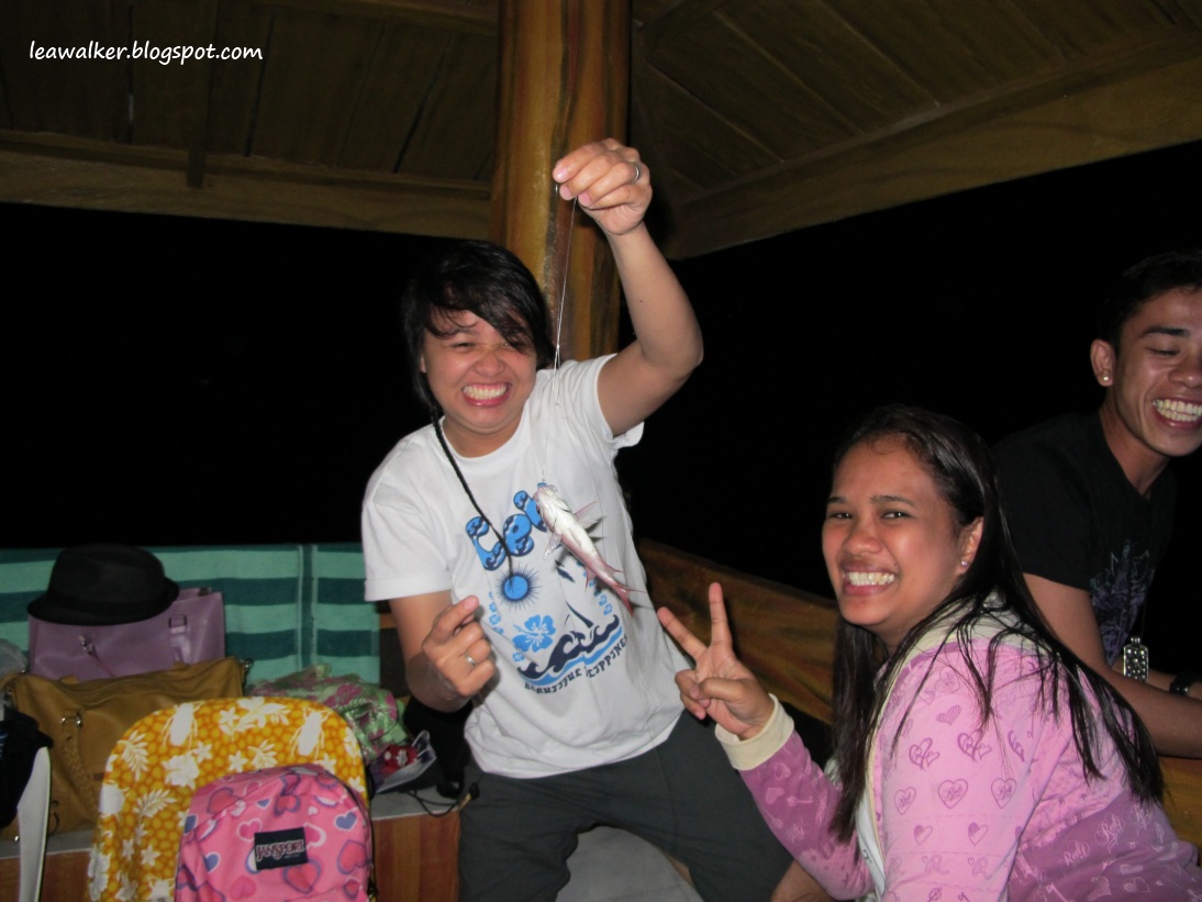 Before dinner , John and I went to the Cabana. And checked what the excitement was all about. It turned out that Val and Kim caught a fish. 🙂 While the others are busy fishing.