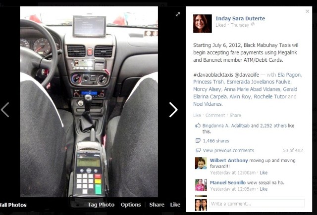 Mabuhay just recently released black taxis in Davao City with GPS and atm/debit card facilities through Bancnet and Megalink.