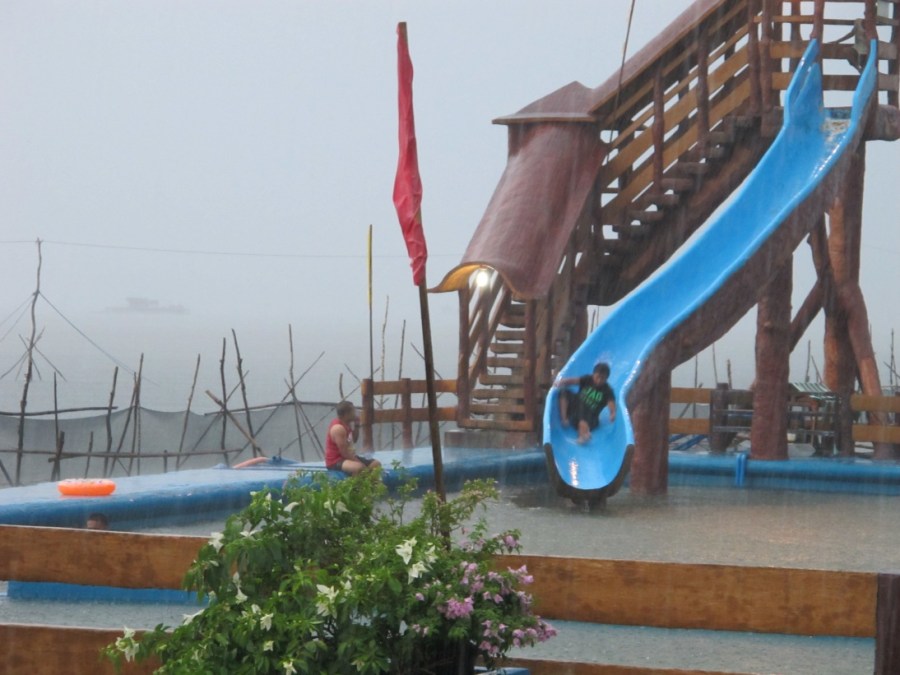 Swimming Pool with slide. This is filled with sea water.