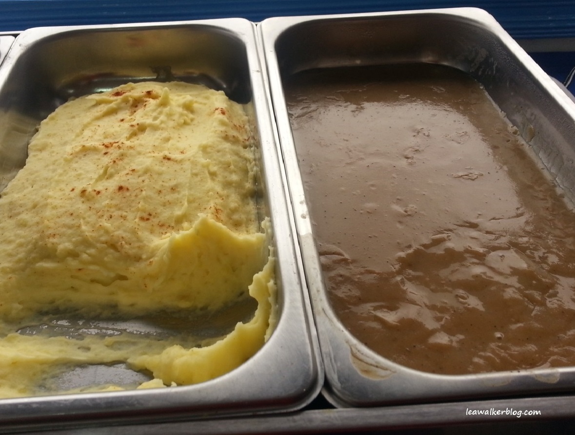 Mashed Potato with brown gravy.