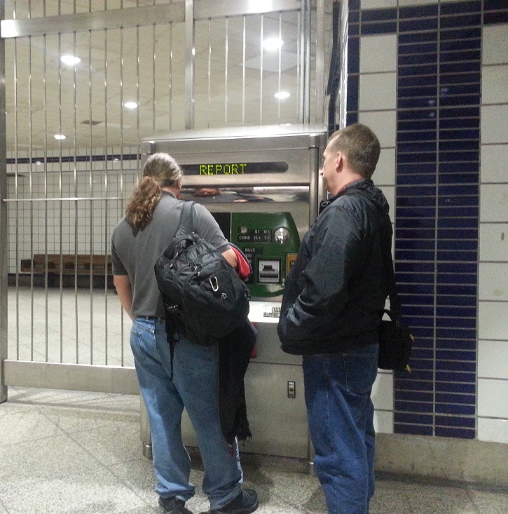 (Above) John and my brother inlaw, trying to get tickets. 🙂