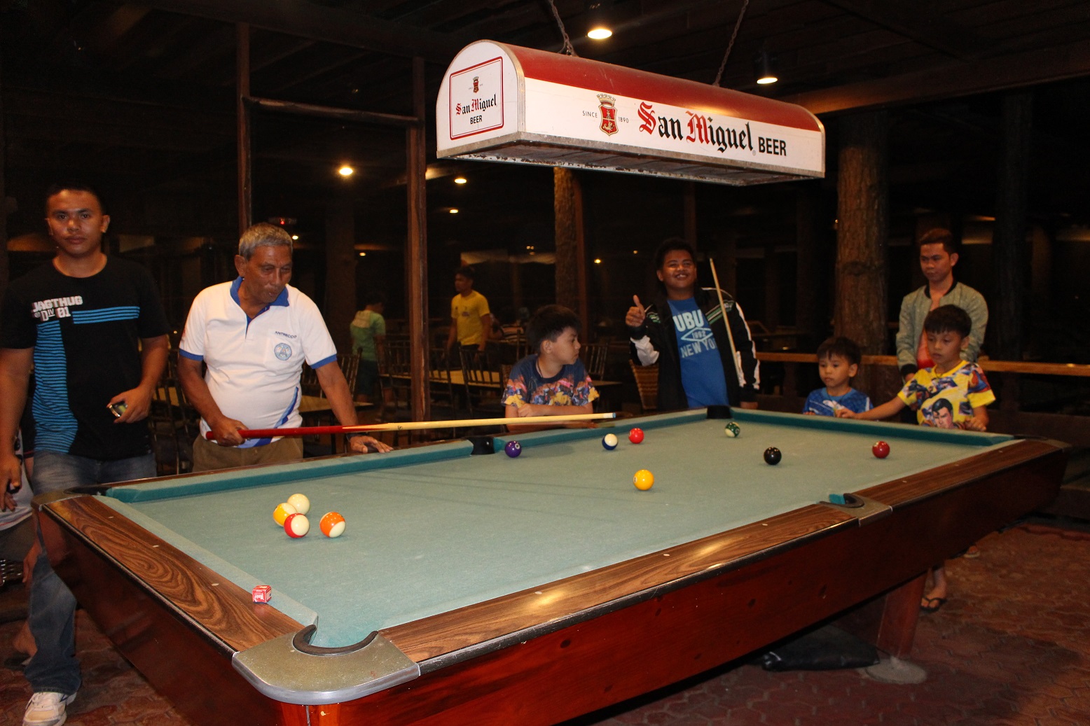 Manong Osting and Cholo, playing billiards. On the background are Dandan and Rey with Tadz’ kids. 🙂