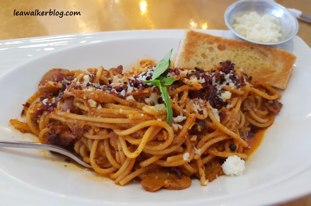 Another favorite was their Beef , Bacon and Mushroom Pasta. John was so happy about it, he texted a friend about his new found place and said – their pasta is not filled with sugar! ha ha