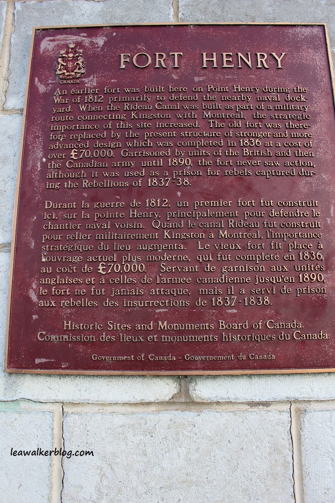 WIKIPEDIA states- Fort Henry (also known as Fort Henry National Historic Site) is located in Kingston, Ontario, Canada on Point Henry, a strategic point located near the mouth of the Cataraqui River where it flows into the St. Lawrence River at the east end of Lake Ontario. The original fort was constructed during the War of 1812, when present-day Ontario was a British colony known as Upper Canada. The fort was constructed on the high ground of Point Henry to protect the Kingston Royal Naval Dockyard (the site of the present-day Royal Military College of Canada) from a possible American attack.[1] The fort also monitored maritime traffic on the St. Lawrence River and Lake Ontario, as the loss of this vital shipping route would have cut off supplies to Kingston and the rest of Upper Canada. The fort is currently a significant tourist attraction.