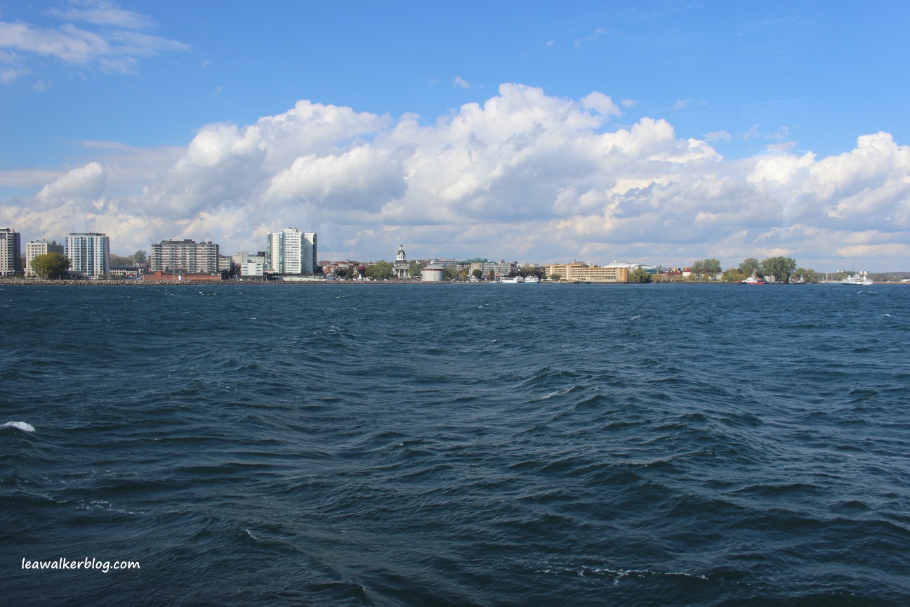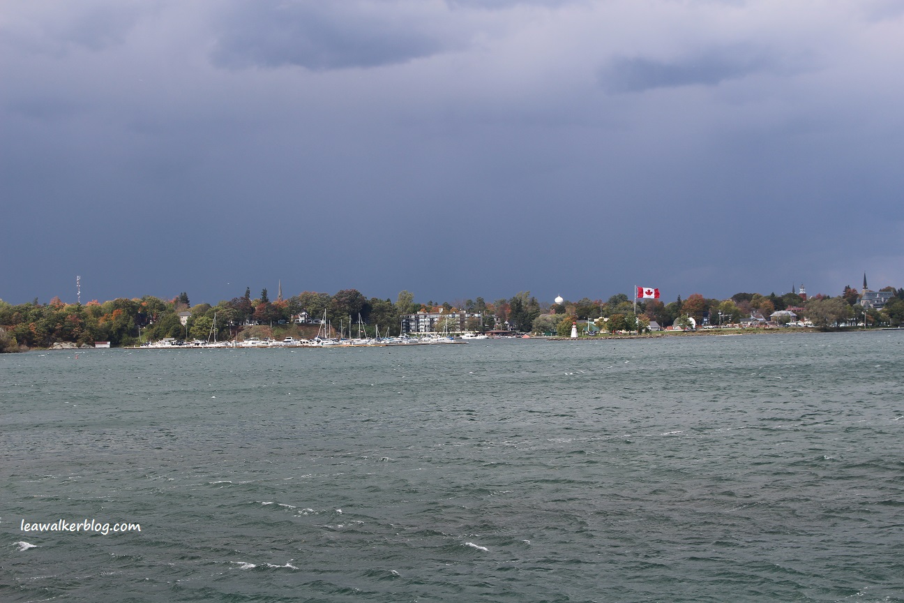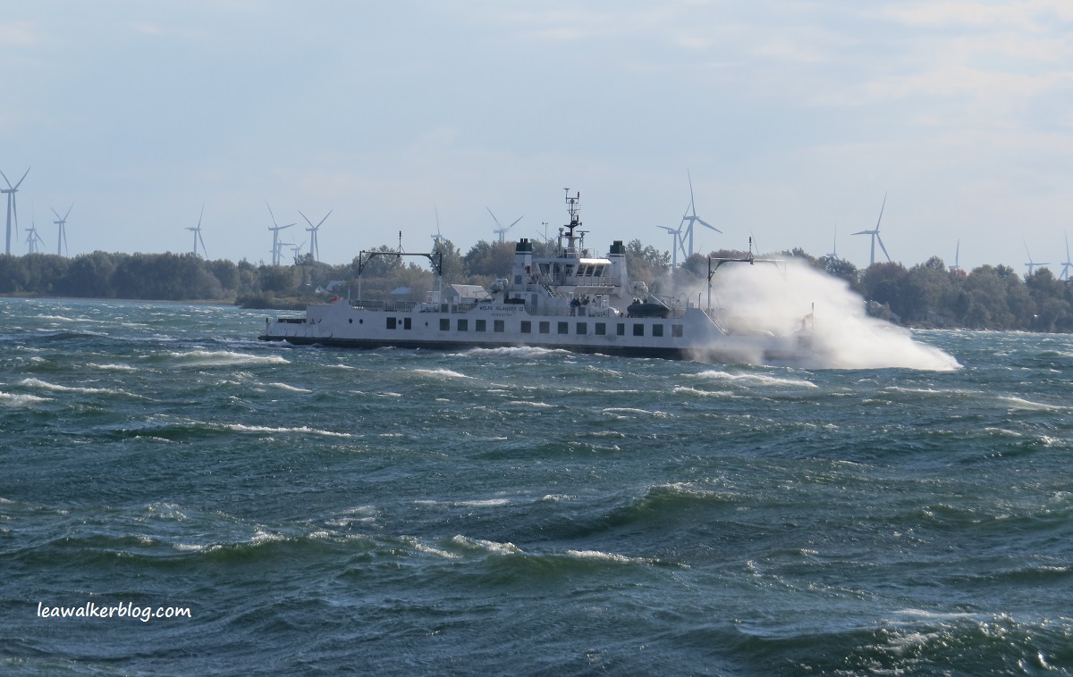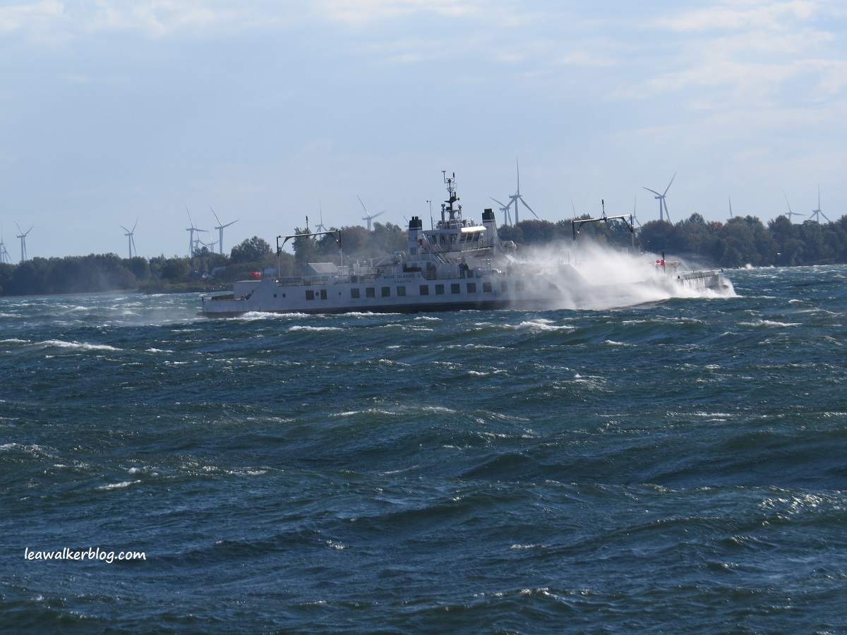 It was sunny when we started the trip. But strong winds started to blow our way, as we were going back to Kingston port. Big waves plied our way, which made traversing Lake Ontario frightening.
